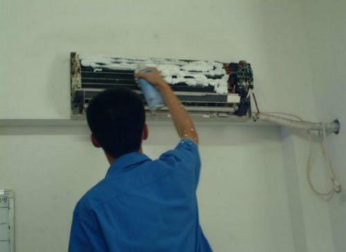 | 烟台市空调维修师傅给烟台市用户上门维修清洗空调。 |